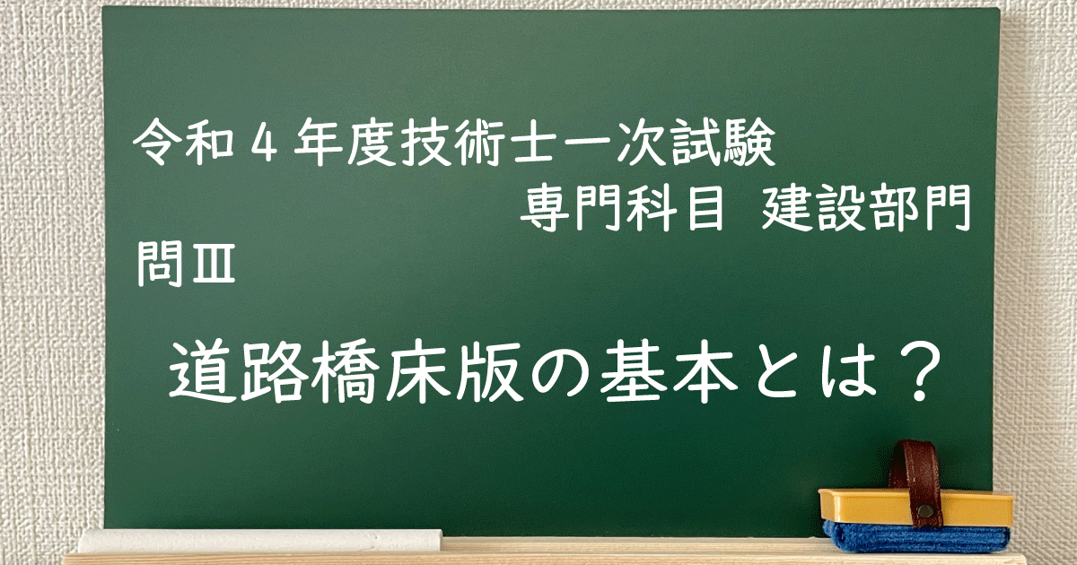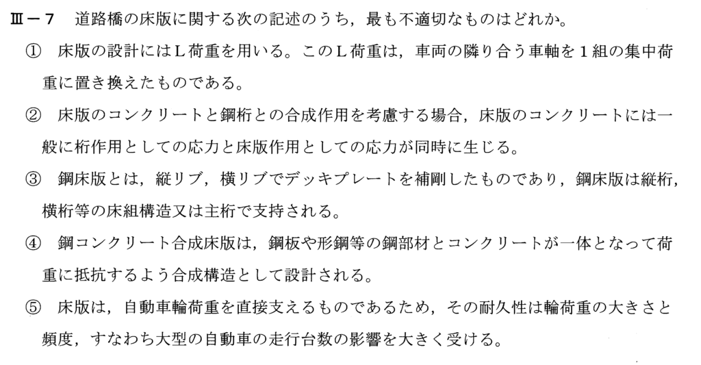 令和4年度技術士第一次試験[専門科目]_建設部門_Ⅲ-7の問題を解いてみます。道路橋の床版について問われている問題です。